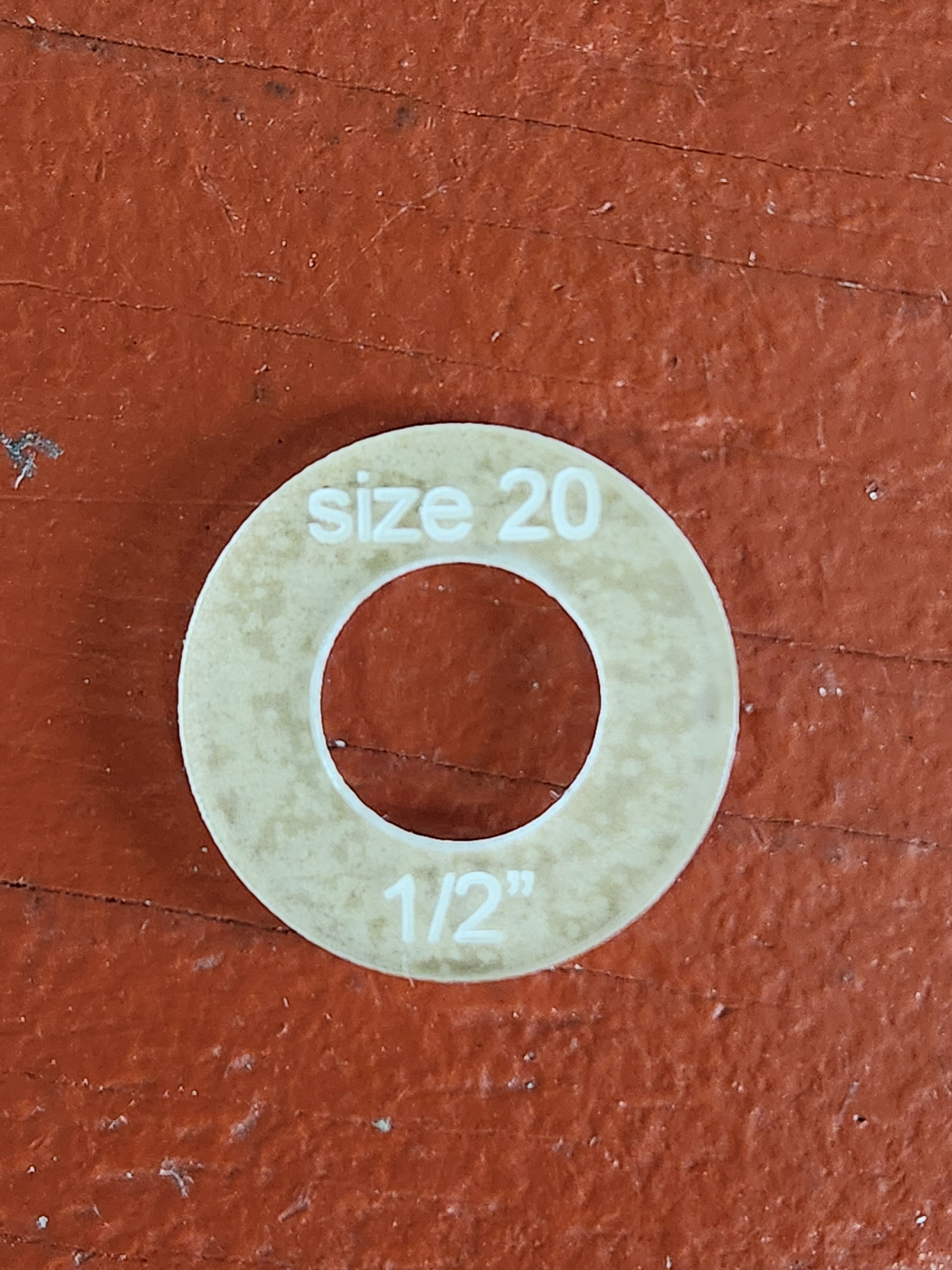 These clear, plastic templates help create the perfect coverbutton by enabling you to keep fabric images in the center. Purchase the entire set of seven templates for all sizes of our buttons, or just buy the one you need. Works with our aluminum buttons and the brass buttons with teeth.